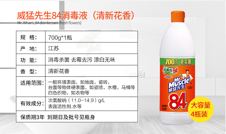 - 商品名称:威猛先生(MrMuscle)84除菌液700g 20瓶/箱