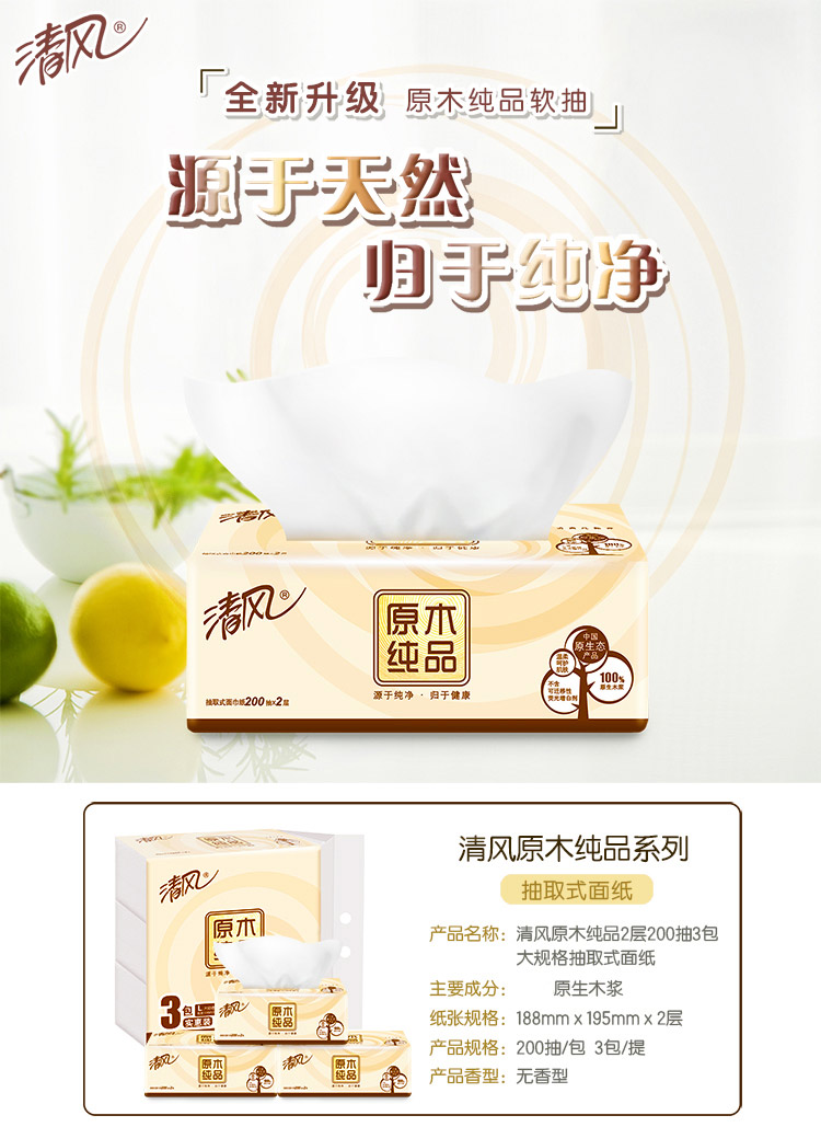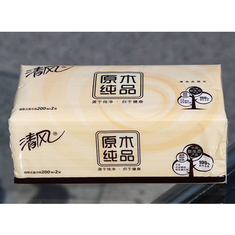 - 商品名称:清风 BR38LC1S双层原木大规格塑包面纸-200抽